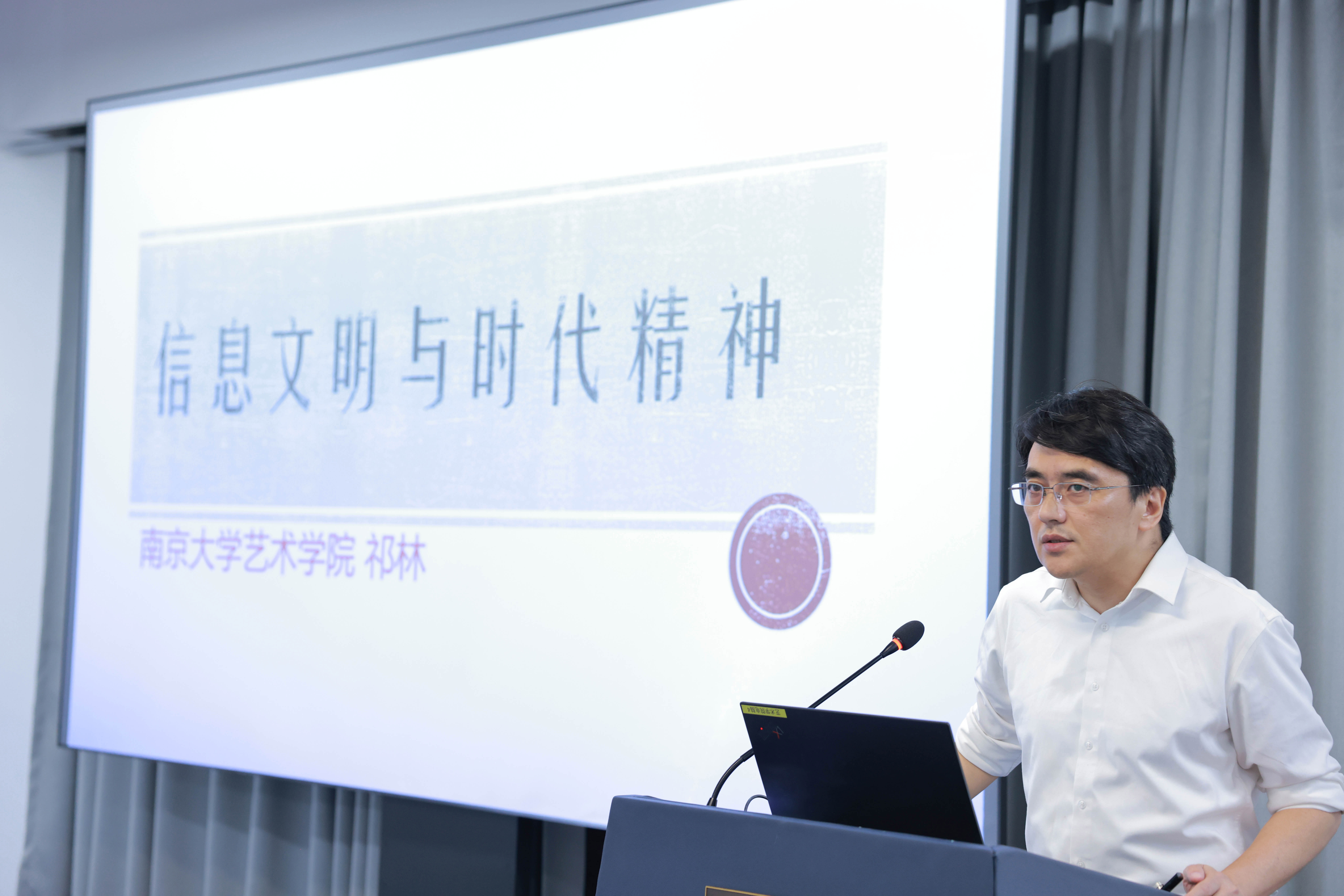 桃花坞 祁林教授以《美育、艺术与科技》为题开展了专题讲座。祁林教授通过“能量”和“信息”两个关键词,为同学们提供了理解、衡量、把握一种文明的框架。在“能量”角度,他勾勒了一条从游牧与采集的时代,经农业文明、工业1.0和工业2.0文明、数字文明再到智能文明的脉络。“信息”则被他称为使用能量的“说明书”,于是他也呈现了随着社会文明的进步所形成的一整套信息系统的脉络,比如从身体、语言、文字、纸笔、印刷、电子到如今的人工智能。那么艺术在哪儿呢?在祁林教授看来,艺术也是一套信息系统,它能把人的能量、社区的能量乃至社会和国家的能量调动起来。在遵循艺术作为一套信息系统的前提下,祁林教授进一步讨论了信息具有的两种力量:一种是符号力,另一种是传播力。在符号力方面,信息能进行内容表征,因此能够用来沟通、传递知识和表征想象或理想。传播力方面,信息具有一套整合社会的机制,能使物理世界按照特定的社会方式进行运转,因此它能建构认同和打造共识。最后,祁林教授回到了将艺术作为信息的落脚点,指明艺术要构造一种“idea”。他也希望同学们通过回顾自己的自媒体记录,反思自身所表达的“idea”,检视是在什么样的框架下建构了一个那样的自己。这也是祁林教授认为为何要学习艺术传播,为何要从信息、能量的角度去思考社会与文化问题的原因之一。