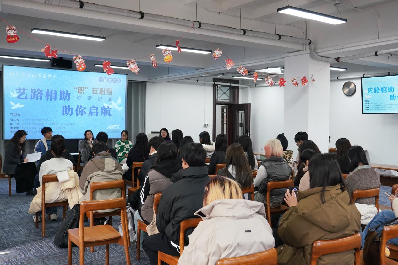 党委书记石红梅展开对谈,围绕艺术行业从业经历、艺术专业就业选择等话题深入交流。沙龙由桃花坞