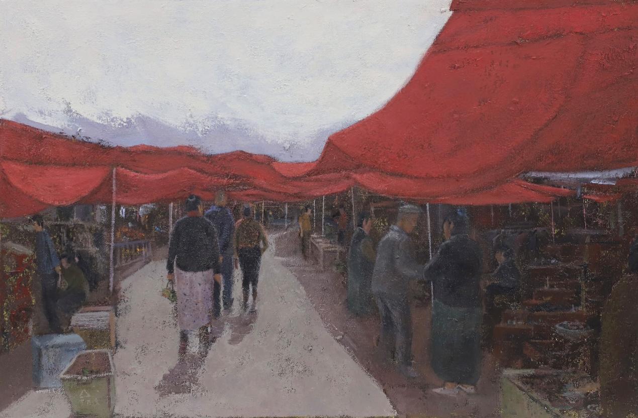 绘画类 乙组 二等奖 《红色巴扎》 光昇(指导教师:陆庆龙)